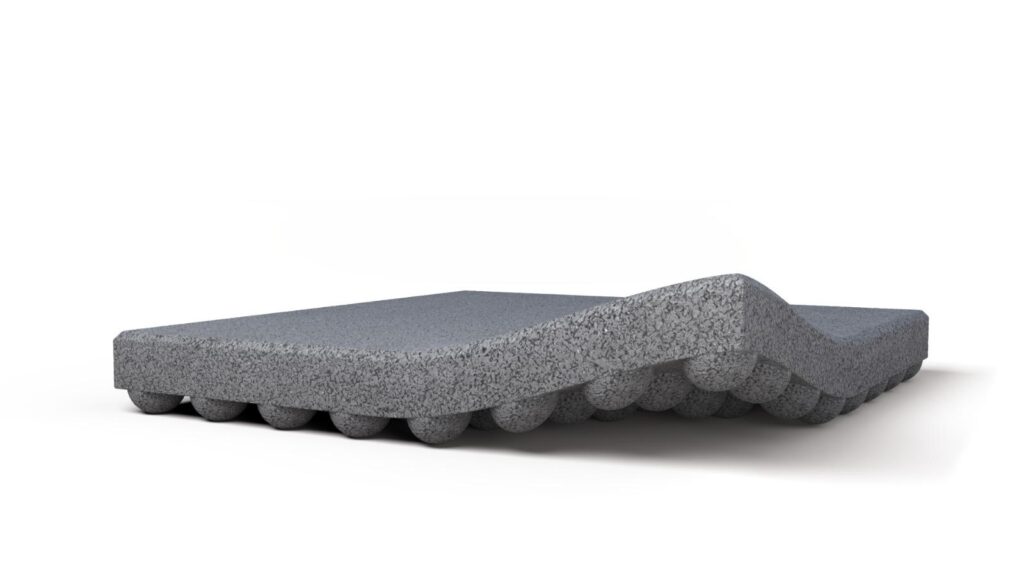 Płyty gumowe SBR oraz EPDM przeznaczone na plac zabaw posiadają zastrzeżony w Urzędzie Patentowym rdzeń, który wraz z poprawnym ułożeniem płyt na przekładkę i złączeniem kołkami gwarantuje wysoką stabilność podłoża FLEXIZONE.
