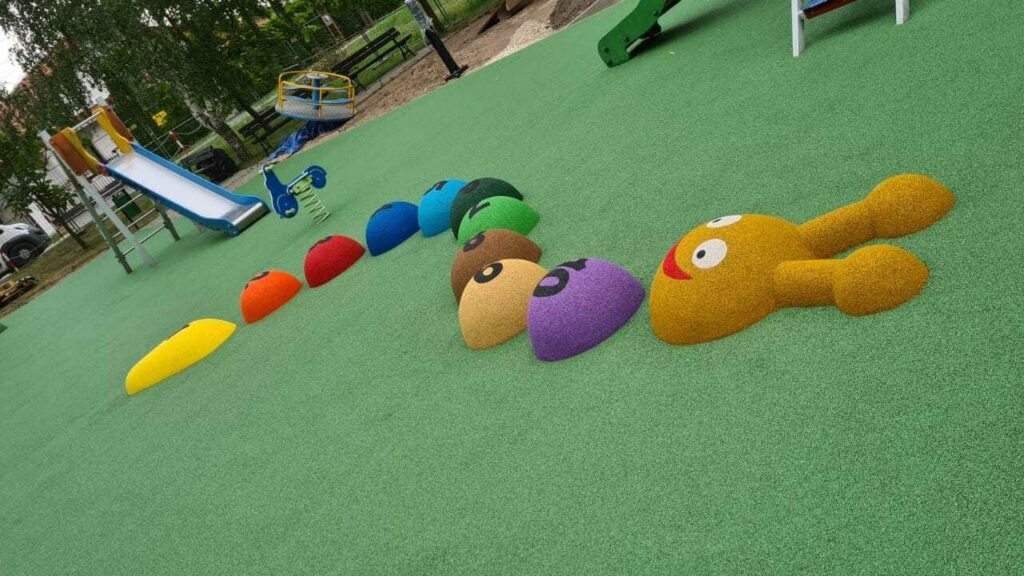 Rozwiązania sensoryczne są dodatkiem funkcji i estetyki. „Baza” nadal pozostaje ta sama: miękkie podłoże na place zabaw musi spełniać wymagania bezpieczeństwa (HIC) w strefach, gdzie dochodzi do upadków – dlatego sensorykę najlepiej planować razem z układem stref i doborem grubości.